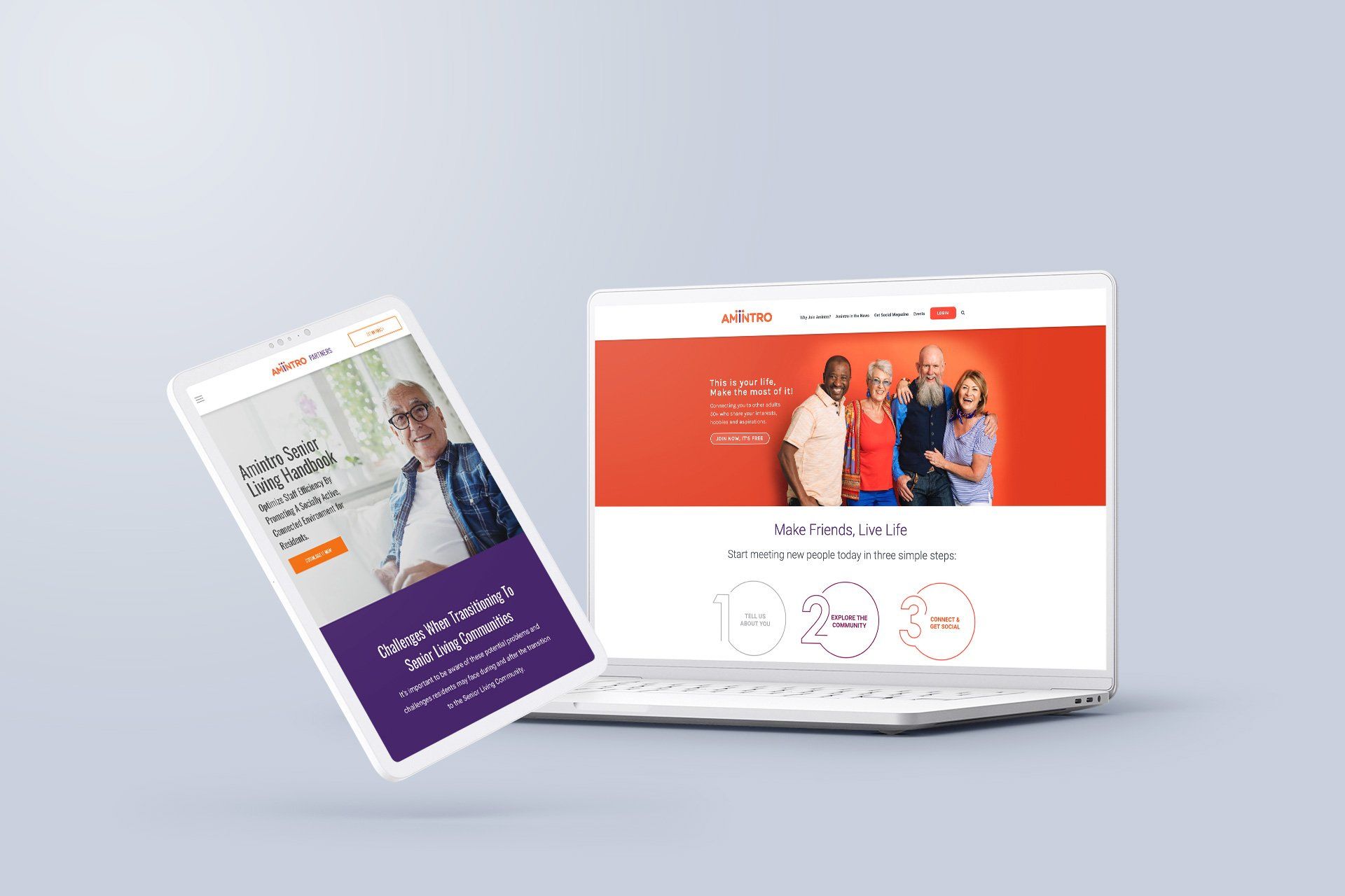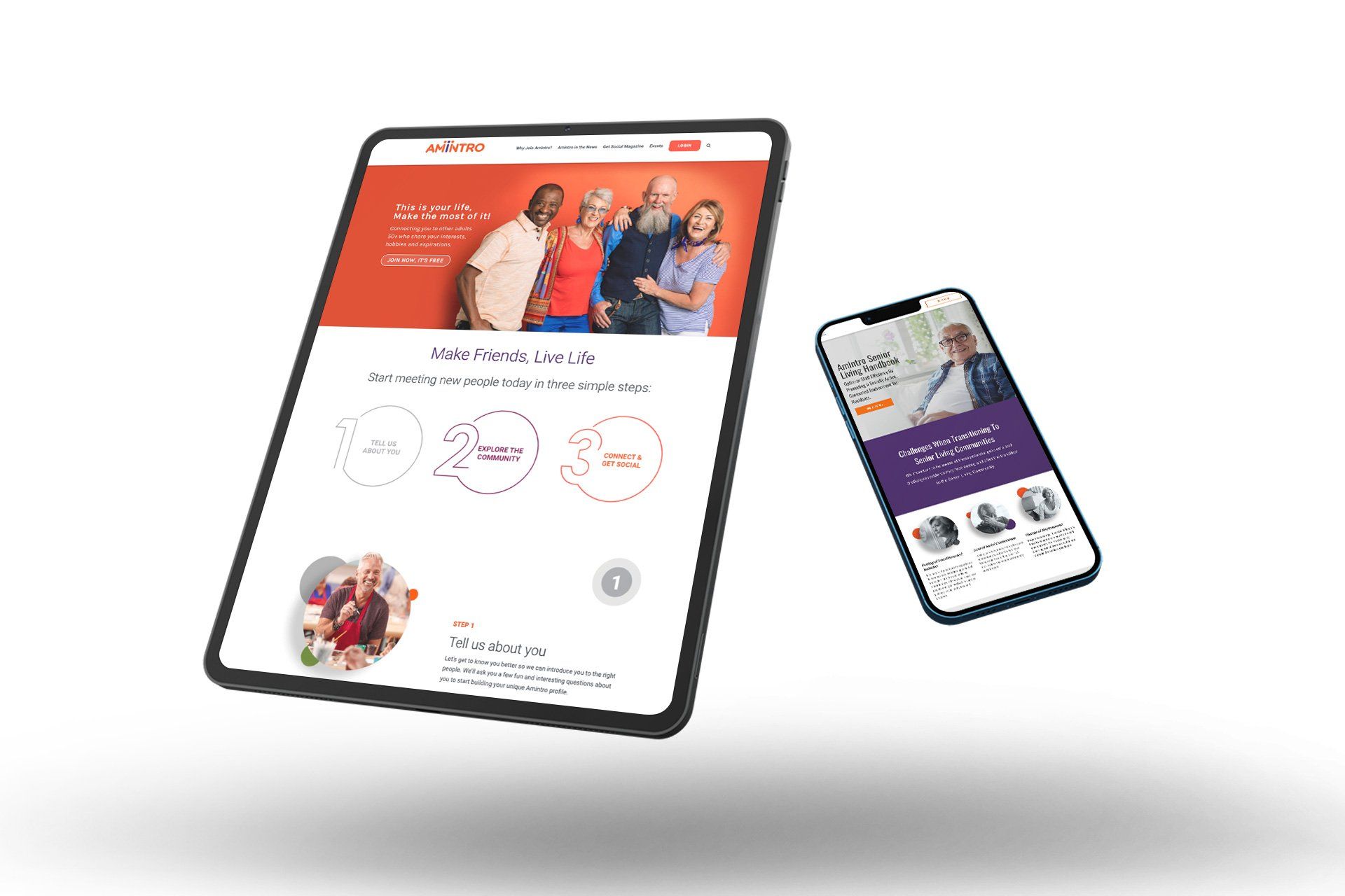 Amintro is a fresh exciting social networking community for the 50+ generation. Brand Society was commisioned to recreate the website experience with energetic colours and clean informative content. To educate visitors and get them to enroll.